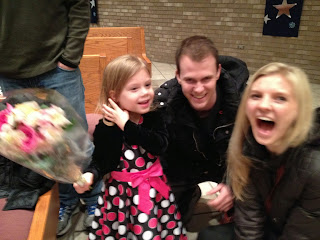 We were blessed to have most of this area's family join us to watch Karis's preschool Christmas program. Adorable, of course. But relevant here is this: after the show, Karis found us all and was clearly a bit overwhelmed. Kate and Tay pulled Karis aside, knelt down, presented her with flowers and asked her to be their flower girl. Karis - repeatedly - answered "no". Oh goodness. What?! She loves being a flower girl, and even coyly asked Kate the weekend before if she has one (you know, "not that I want to be it or anything - just wondering"). !!!!! Komplicated Karis, as my mom says.